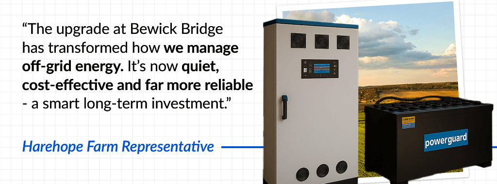 Powerguard replaced an unreliable off‑grid system at Bewick Bridge with a solar‑driven, intelligently controlled solution, reducing diesel reliance and costs while restoring clean, quiet power.